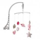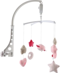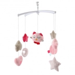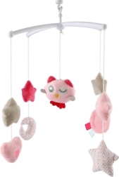 Apaisez bébé grâce au doux mouvement et à la mélodie offerts par ce mobile rose pour berceau avec petite chouette. Grâce à son mécanisme musical à remontoir et à ses formes suspendues toutes douces (étoiles, cœurs, croissant de lune), il aide à distraire et endormir les enfants. Installation facile sur le lit et douces couleurs pastel idéales pour toute chambre d’enfant.
