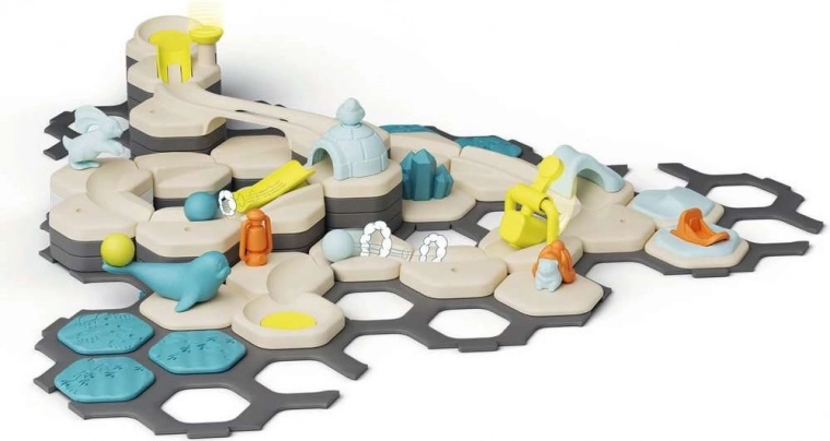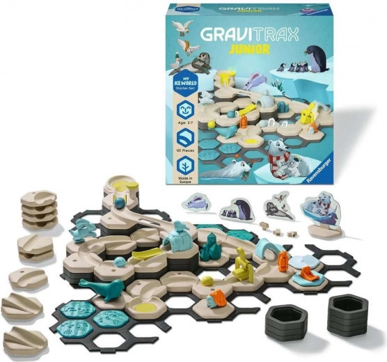 GraviTrax Junior Monde glacé : coffret de démarrage dès 3 ans. 101 pièces, actions Balançoire et Marteau, figurines en bioplastique à base de bois. Amusement créatif glacé.