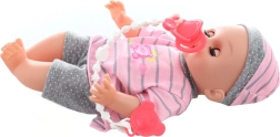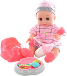 Le coffret comprend une poupée avec des accessoires de soin – pot, chaussures, biberon, assiette et plus encore. Un excellent point de départ pour les jeux d'imitation de papa et maman.