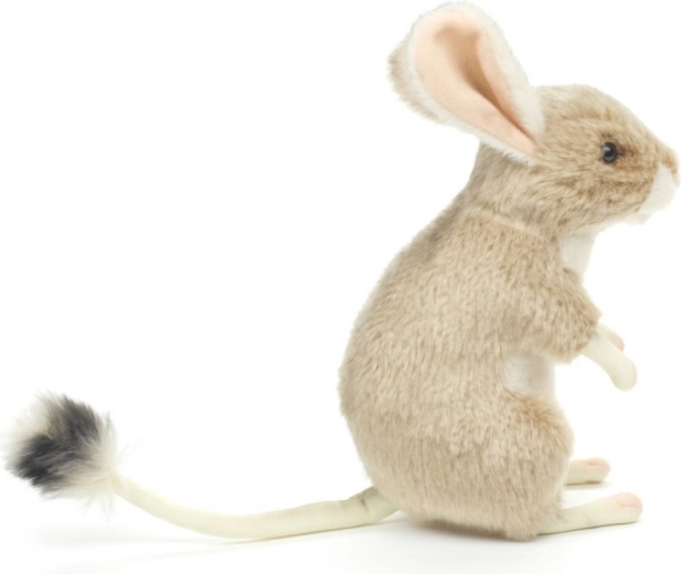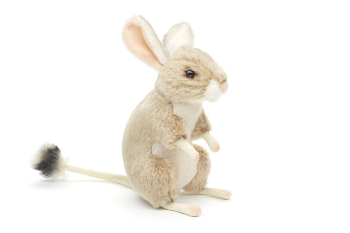 Cette gerboise en peluche aux tons naturels est conçue pour un jeu sûr et agréable. Son pelage doux, ses petites pattes légèrement rosées et sa longue queue à touffe en font un compagnon particulièrement craquant. Grâce à sa taille compacte de 18 cm, elle tient parfaitement dans les mains des enfants et convient aussi bien aux voyages qu’au lit.