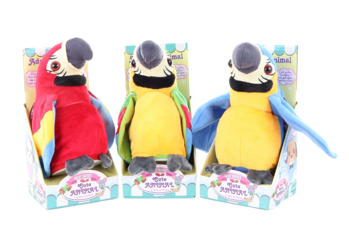 Adorable perroquet en peluche parlant qui ravira les enfants dès 3 ans. Une fois allumé, il répète les mots tout en battant des ailes, créant ainsi un jouet interactif amusant pour jouer au quotidien. Fonctionne avec 3× piles AAA (non incluses).