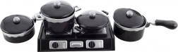 Comprend 3 casseroles, une poêle wok, 4 couvercles, un réchaud et d’autres accessoires pour un jeu de cuisine réaliste.
