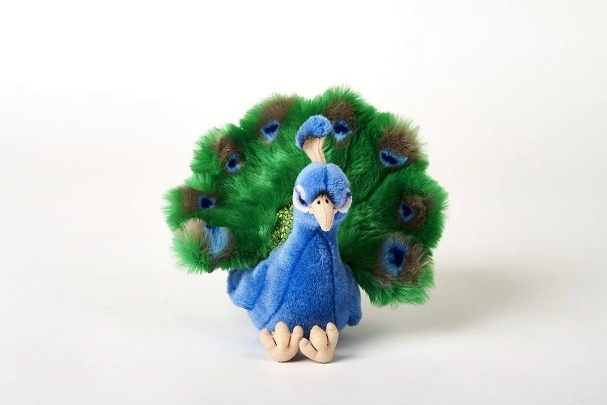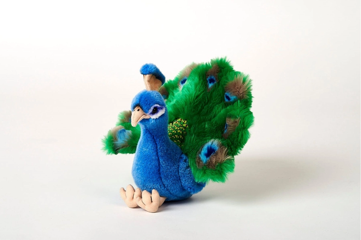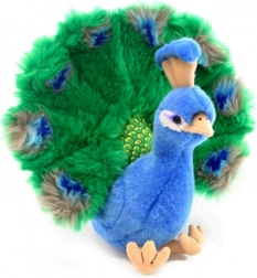 Ce paon en peluche se distingue par sa fourrure douce et soyeuse et ses couleurs vives qui attirent le regard. Sa taille de 25 cm est parfaite pour les petites mains et les câlins confortables. La finition de qualité et les coutures sécurisées garantissent une longue durée de vie du jouet.
