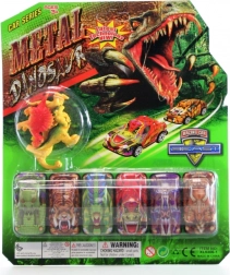- 6 voitures stylées au motif dinosaure – chacune d’environ 6 cm de longueur.