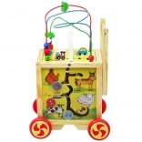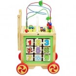 En plus du chariot de marche, le produit est doté d'un cube éducatif qui propose une variété d'activités pour le développement des compétences. Chaque face du cube offre un jeu différent – de la piste de l'alphabet au labyrinthe coloré.