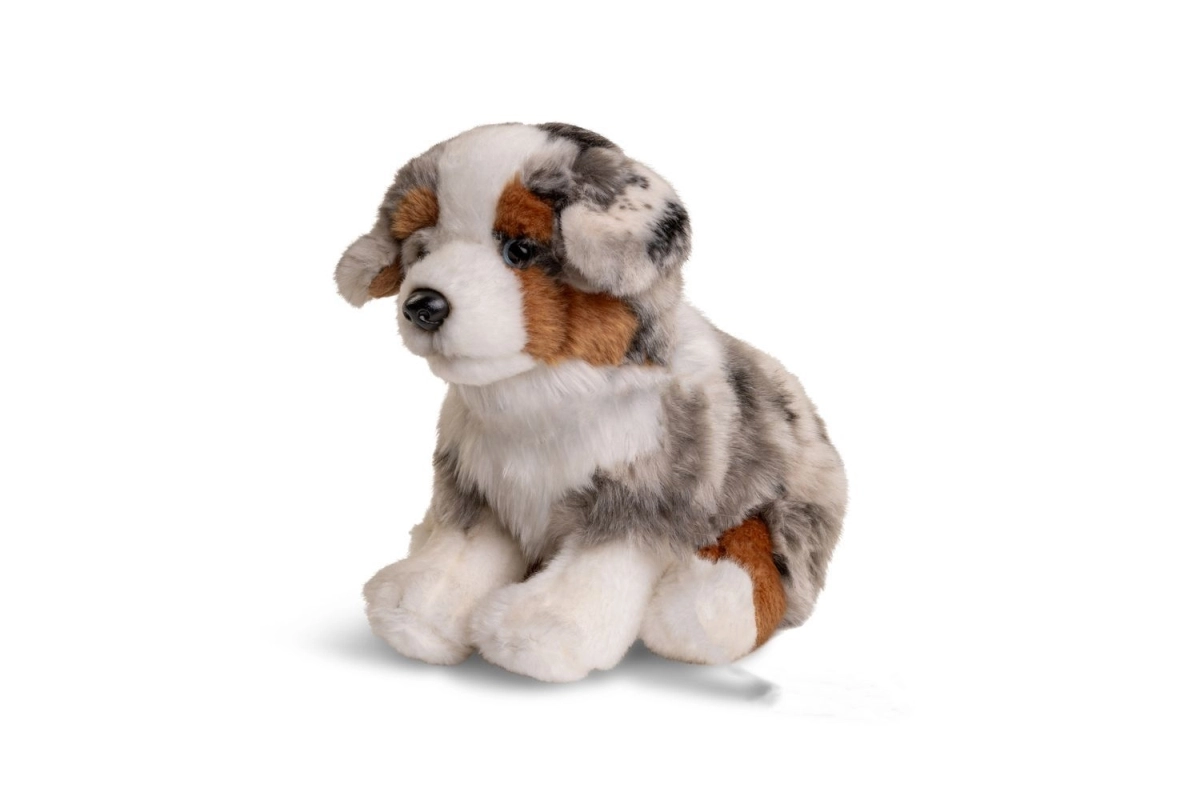 Adorable chien en peluche de race berger australien, taille 26 cm, fabriqué avec des matériaux doux et de qualité, idéal pour les câlins et le jeu. Il offre un pelage et un visage au rendu réaliste, convient dès la naissance et, grâce à sa conception respectueuse, est en plus écoresponsable – un choix parfait pour les enfants et les parents à la recherche d’un jouet sécurisé, doux et durable.