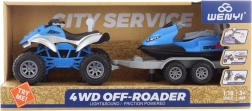 Ce quad avec remorque et scooter, riche en détails, apporte aux enfants une foule d’actions et de possibilités imaginatives. Grâce aux effets lumineux et sonores, le jeu est encore plus réaliste et captivant. La remorque sert au transport du scooter, permettant aux enfants de créer leurs propres histoires et aventures.