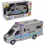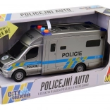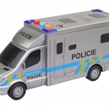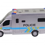 Cette voiture de police offre aux enfants une action palpitante avec des effets lumineux et sonores réalistes en langue tchèque. Le véhicule avance grâce à un mécanisme à friction, dispose de portes ouvrantes et d’un gyrophare fonctionnel avec lumières bleues d’avertissement, complétés par des annonces de l’équipage et du centre de dispatching. Idéal pour les petits policiers dès 3 ans.