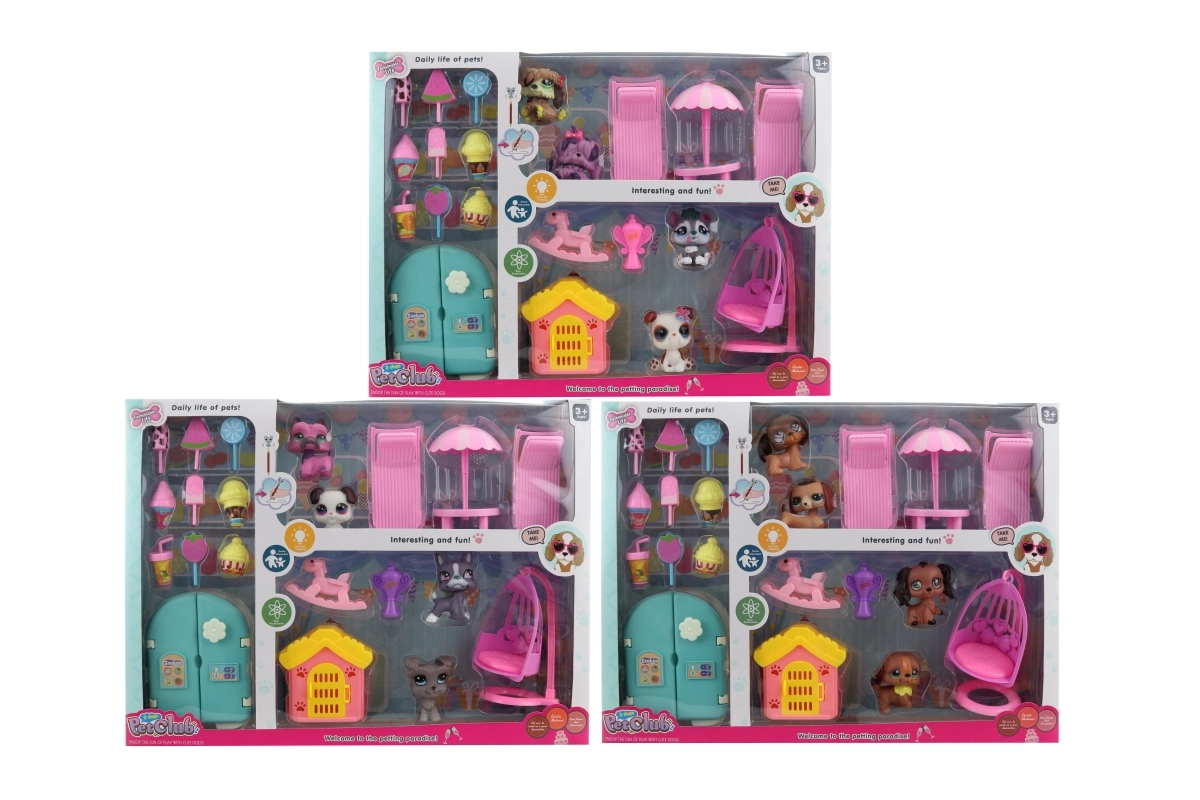 - 4 animaux, maisonnette, fauteuil à bascule, 2 transats avec parasol, réfrigérateur, petits accessoires
