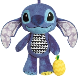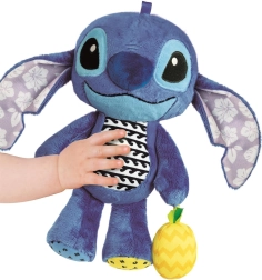 Adorable compagnon en peluche STITCH pour les tout-petits, associant matières douces, textures variées et détails colorés pour stimuler les sens. Comprend un hochet, des oreilles bruissantes, une lanière pour l’accrocher à la poussette et des éléments souples faciles à saisir par de petites mains.