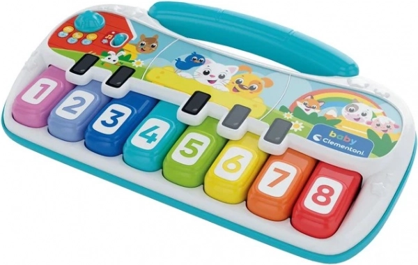 Découvrez le ludique petit piano pour enfants avec animaux CLEMENTONI BABY, qui initie intuitivement les tout-petits au monde de la musique. Il propose 6 modes musicaux, 8 touches colorées, l’apprentissage des couleurs et du comptage, ainsi qu’une poignée de transport pratique.