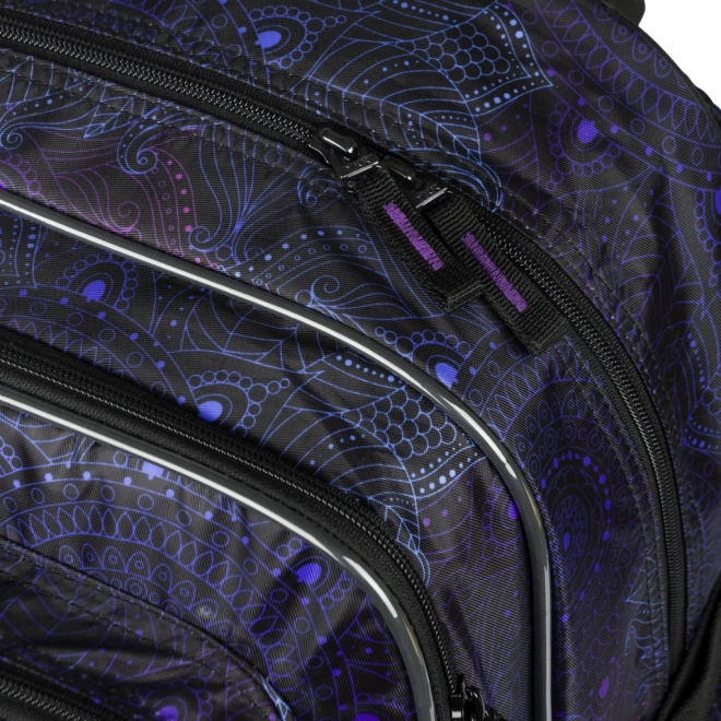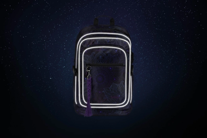 Un design élégant aux motifs violets et noirs est complété par un pendentif tendance. Le sac offre un volume de 29 l, une capacité de charge de 7 kg et a été testé et certifié par un laboratoire d’essais accrédité, répondant ainsi aux exigences de qualité et de sécurité.