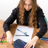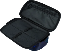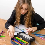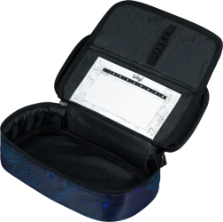 La trousse est équipée d'une cloison intérieure amovible et d'une poche pour l'emploi du temps, permettant une organisation efficace des fournitures scolaires.