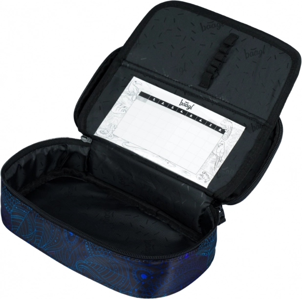 Structure solide avec séparateur intérieur pour un rangement sécurisé des fournitures d'écriture et des poches pratiques.