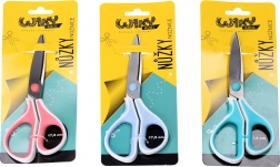 Ciseaux colorés pratiques de 17,5 cm avec poignée souple ergonomique et grip en caoutchouc antidérapant. Conviennent pour l'école, la maison et le bureau. Disponibles en 3 coloris.
