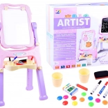 Grande ardoise pour enfants double face avec surface rotative, combinant une face blanche magnétique pour feutres effaçables et une face noire pour la craie. Inclut des compartiments et gobelets de... Voir plus