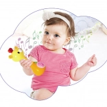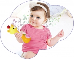 Le hochet interactif offre bien plus qu’un simple bruissement : il propose l’écoute de mélodies joyeuses, de sons courts (oiseaux, rire d’enfant, ressort) ainsi que le jeu de notes lors des secousses. Le ventre lumineux multicolore de l’animal attire l’attention et motive à rejouer encore et encore.