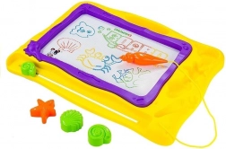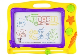 Le fond coloré divisé en 8 sections apporte de la vivacité à chaque œuvre et stimule l’imagination des enfants. Le design marin avec coquillages et étoiles de mer ravira les petits amoureux de l’océan. Une fabrication de qualité garantit une longue durée de vie et une utilisation sûre – dessinez uniquement avec le stylo magnétique fourni.