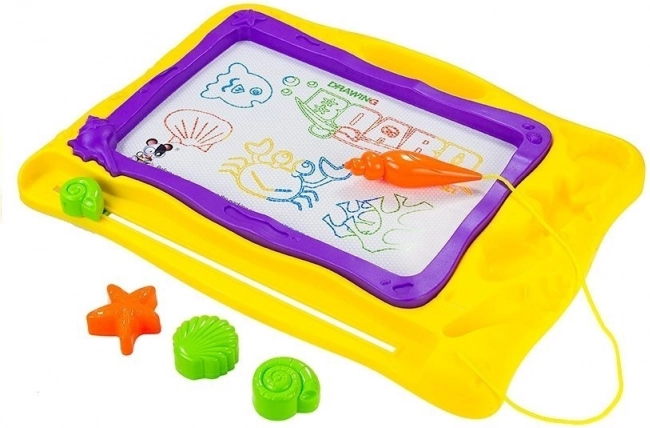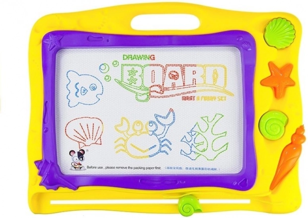 Découvrez un jouet ludique et pratique pour les petits artistes – tableau de dessin magnétique aux couleurs marines avec un fond coloré divisé en 8 sections. Grâce à l’effacement magique par curseur, les enfants peuvent dessiner encore et encore sans salissures. Sont inclus 3 tampons figuratifs (cœur, étoile, rond) et un stylet ergonomique en forme de coquillage pour une prise en main confortable, favorisant la créativité et la motricité fine.