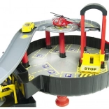 - 2 petites voitures, hélicoptère, parking multi-niveaux avec rampes