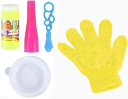 Le set avec gant magique transforme le soufflage classique de bulles en un jeu créatif et interactif. Il suffit de verser la solution dans le bol, d’immerger la baguette et de souffler une bulle – le gant spécial vous permet d’attraper les bulles, de les lancer légèrement et de vous entraîner à des tours sans crainte qu’elles éclatent.