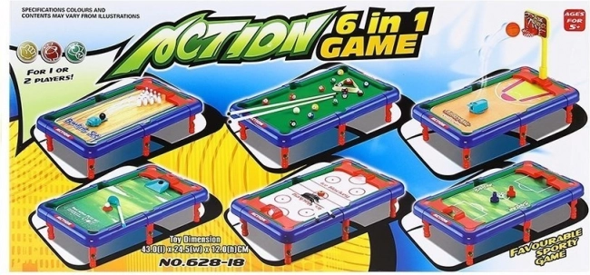 Ce set de table pratique réunit six jeux parmi les plus appréciés en un seul produit : baby-foot, billard, hockey, basket-ball, quilles et golf. Ses dimensions compactes permettent une installation facile sur une table ou au sol et un changement rapide des surfaces de jeu. Idéal pour les frères et sœurs, les amis et les tournois en famille – il offre un maximum de plaisir à 2 joueurs.