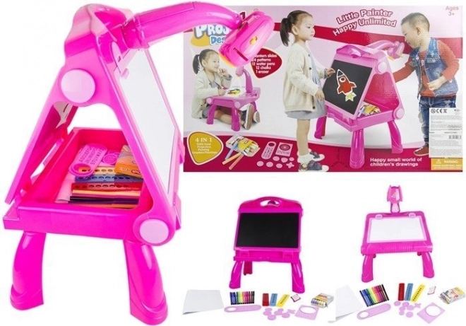Le divertissement est assuré par le projecteur, alimenté par 4 piles AA 1,5 V (non incluses). Fabriqué avec des matériaux sûrs et certifiés pour une longue durée de vie et une structure solide. Toutes les pièces sont certifiées CE. Le tableau lui-même est livré dans une boîte colorée avec une poignée pour un transport facile.
