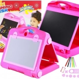 Nouveau, éducatif et grand tableau qui ravira tous les passionnés d'activités artistiques. Le tableau offre deux surfaces pour créer - une face pour écrire à la craie et l'autre pour les feutres. Ces deux surfaces permettent l'utilisation de pochoirs pour tracer, ajoutant une dimension supplémentaire au plaisir créatif.