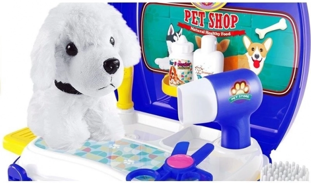Votre enfant peut jouer au styliste pour chien et laisser libre cours à son imagination en s’occupant de l’animal en peluche.
