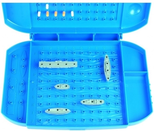Pour commencer, asseyez-vous face à face et dépliez vos valises de façon à ce que l’adversaire ne voie pas la disposition choisie. Chaque joueur prend cinq navires — un destroyer, deux sous-marins, un cuirassé et un porte-avions — et les place dans la configuration souhaitée sur la grille océan au fond de la valise. Les navires peuvent être placés verticalement ou horizontalement, mais pas en diagonale. Une fois la partie commencée, vous ne pouvez plus changer la position de vos navires.