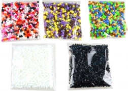4 plaques, 2 pinces, 6000 perles (12 couleurs), 6 gabarits illustrés, 2 petits et 2 grands papiers de repassage, emballage d’origine
