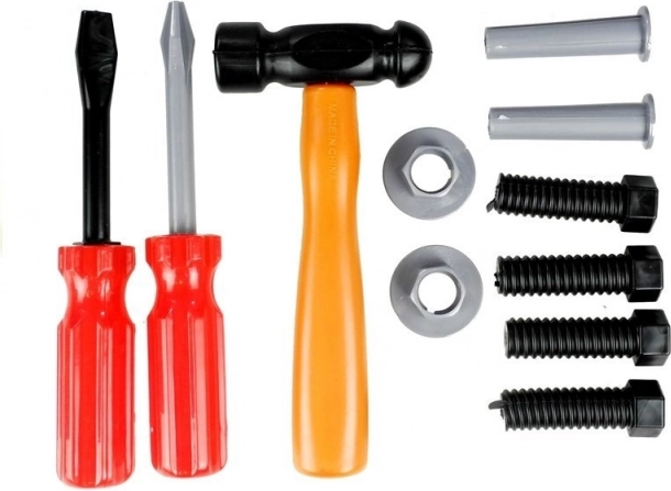 Les enfants peuvent visser, mesurer, scier et « percer », développant ainsi la motricité fine, la coordination œil–main et la patience. Grâce à ses dimensions compactes, la mallette est facile à transporter, à la maison comme chez les grands-parents.