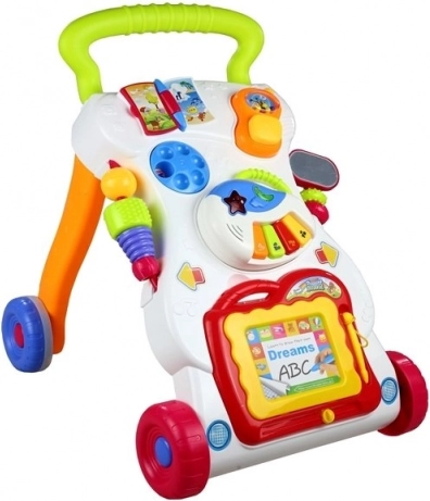 Le trotteur 3 en 1 combine un panneau éducatif, un trotteur pousseur stable et des jouets indépendants pour jouer assis ou debout. Les enfants s’exercent de manière ludique aux lettres, chiffres, formes et mots, tout en renforçant leur équilibre et leur assurance à la marche.