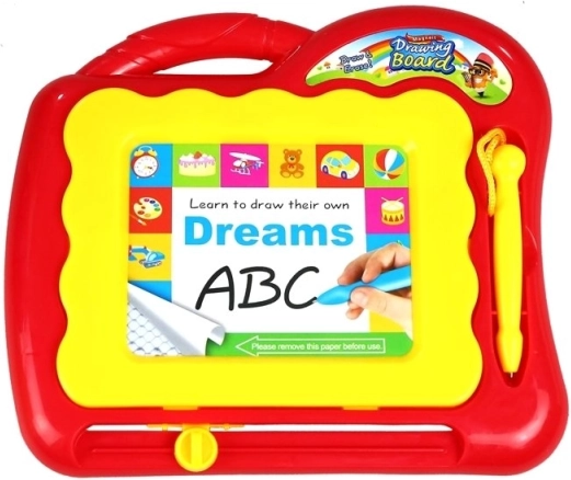 L’ardoise amovible encourage le dessin et l’imagination. Idéale en voyage comme pour les moments calmes à la maison.