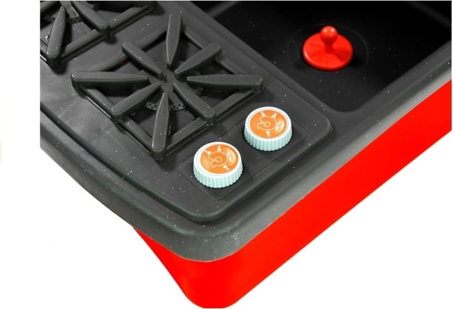Le jouet est fabriqué en plastique sûr, sans bords tranchants, conforme aux normes. Son design coloré séduit aussi bien les garçons que les filles, et le set est destiné aux enfants à partir de 3 ans. Les dimensions de l’évier sont de 42 cm x 32 cm x 31 cm.