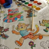 La grande nappe permet à plusieurs enfants de peindre simultanément et de partager la joie de la création.