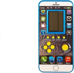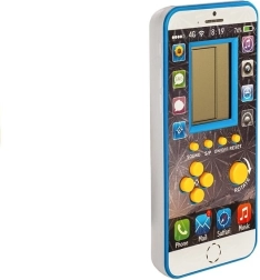 Le jeu électronique présenté ressemble à un téléphone portable. La coque blanche avec des accents bleus s’harmonise parfaitement avec l’impression brillante sur la face avant du produit. Autour de l’écran se trouvent des icônes rappelant celles que l’enfant connaît sur les téléphones de ses parents : galerie, SMS, appareil photo ou lecteur de musique. L’enfant aura ainsi l’impression d’avoir son propre téléphone portable. En dessous, se trouvent des boutons jaunes pour les fonctions de jeu. Ils permettent d’allumer et d’éteindre le jeu, de réinitialiser le jouet ou d’activer une mélodie. Les autres boutons servent à la navigation dans le jeu choisi. La version de poche du jouet renferme une série de jeux différents, dont Tetris, Snake ou Tanks, pour égayer les moments de votre enfant dans le bus ou pendant la récréation à l’école.