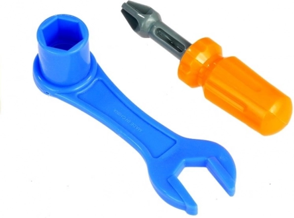 La clé et le tournevis soutiennent la motricité fine et viennent naturellement avec le jouet.