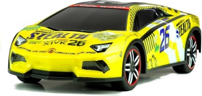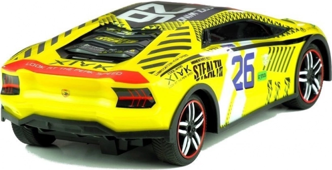 La carrosserie jaune avec des autocollants détaillés et le numéro 26, à l’échelle 1:14, offre un rendu fidèle et invite aux courses à la maison comme en extérieur.