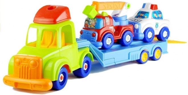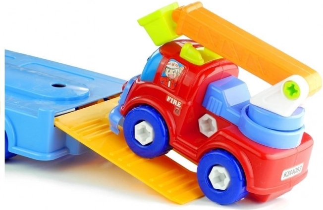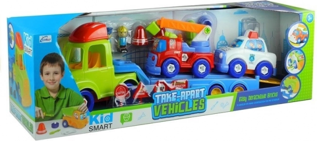 Ce set de véhicules coloré, qui permet le démontage et le remontage, stimule la créativité et les compétences motrices des enfants. Il comprend un porte-voitures, une voiture de police et un camion de pompiers, qui peuvent être facilement dévissés avec des outils en plastique. Ce jouet interactif combine les possibilités de jeu en commun avec les parents ou les frères et sœurs, ainsi que le jeu en autonomie.