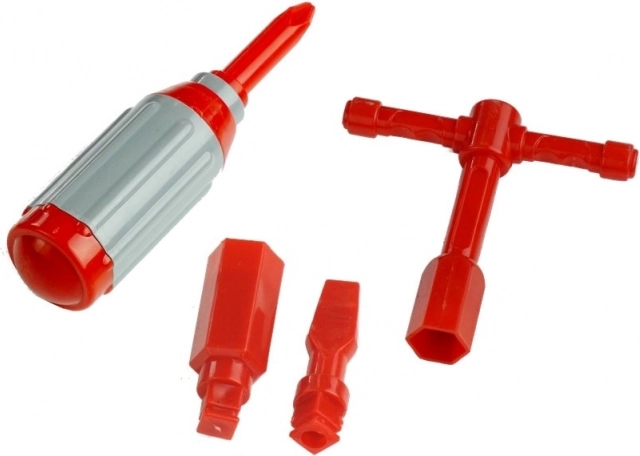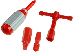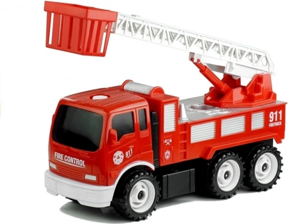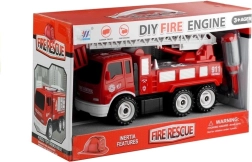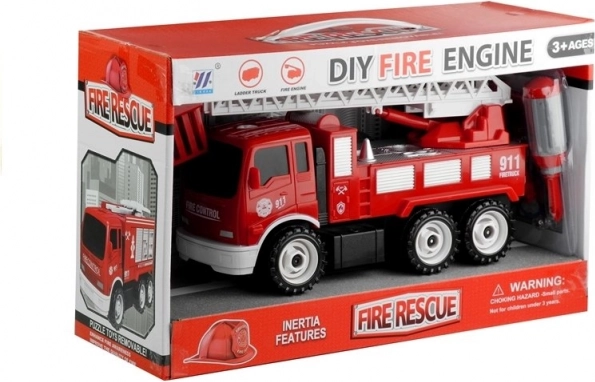 Dimensions des composants : Camion de pompiers : 26 cm x 10,5 cm x 14,5 cm, Échelle déployée : 45 cm, Tournevis : 11 cm x 2,5 cm, Embout interchangeable : 5 cm x 1 cm. Emballage : 26,5 cm x 22 cm x 13,5 cm.