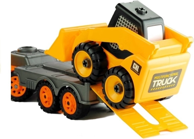 L’emballage comprend également des outils, comme un tournevis avec des embouts interchangeables, qui permettent aux enfants de dévisser différentes parties, telles que les roues, le godet ou la remorque. Les détails soignés et les vitres teintées ajoutent à l’attrait de ces jouets. Les deux véhicules sont fabriqués à partir de matériaux sûrs et certifiés, garantissant un jeu long et sécurisé.