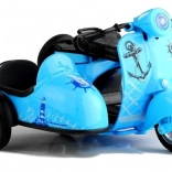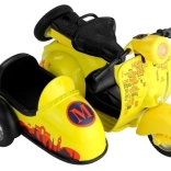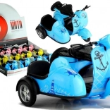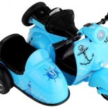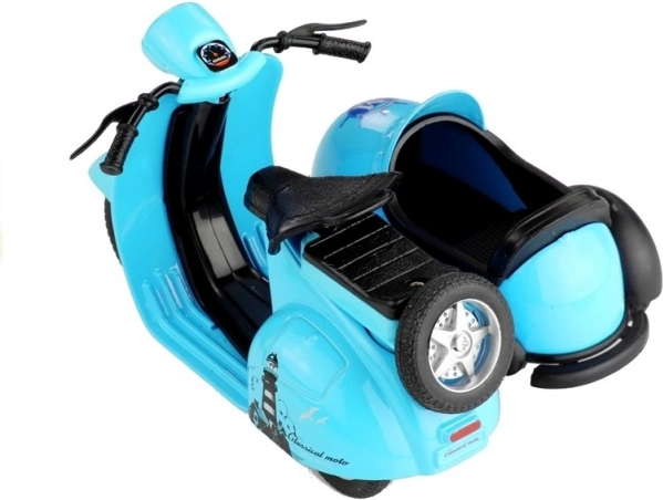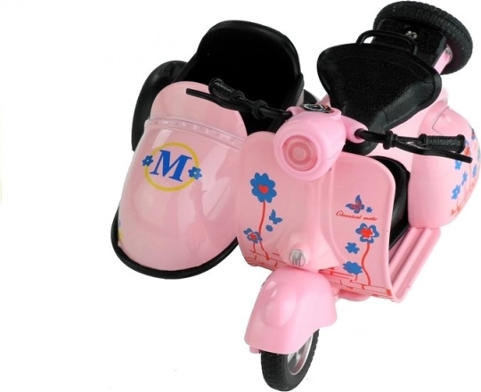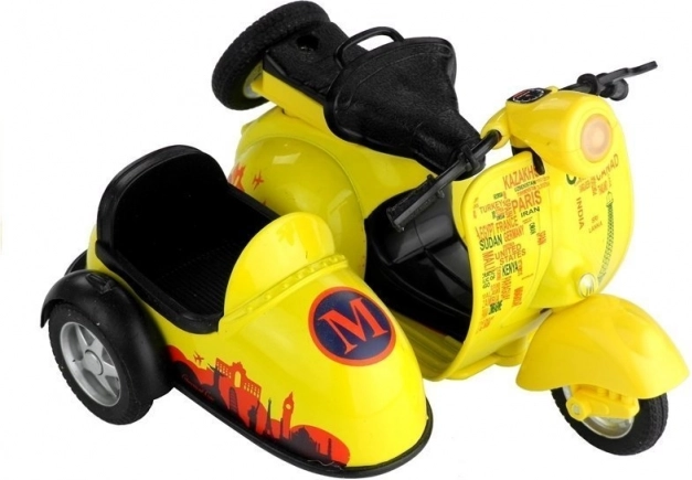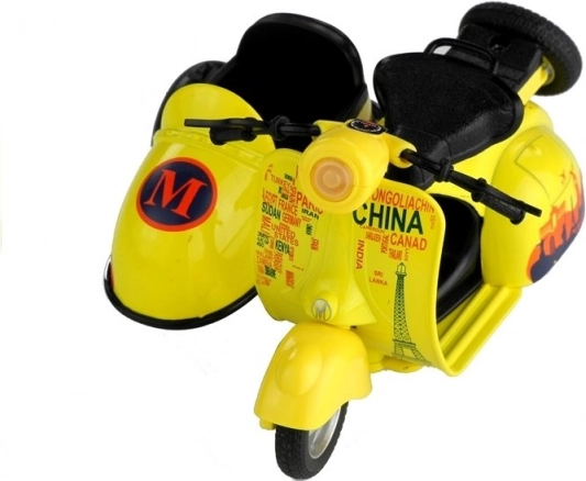 La construction robuste en métal et plastique de qualité garantit une longue durée de vie même en cas de jeu intensif. Le scooter avec side-car est équipé de roues orientables avec une bande de roulement en caoutchouc pour une meilleure adhérence et d’un guidon orientable relié à la roue avant pour des virages réalistes.