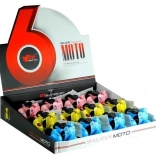 Le modèle est disponible en trois couleurs (bleu, rose, jaune) avec des motifs ludiques. Vendu en présentoir en assortiment de couleurs – veuillez indiquer la variante souhaitée dans la note de commande.