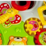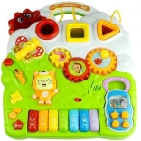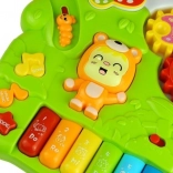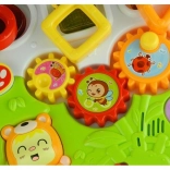 Touches colorées 1–7, engrenages et formes lumineuses développent la motricité fine, le sens du rythme et la perception des couleurs et des formes. Le soleil clignote au rythme de la musique.