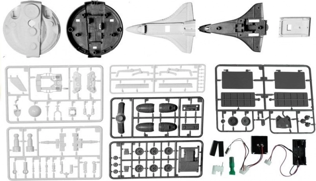 Avec le kit fourni, vous pouvez créer une navette spatiale, une station spatiale et un rover. L’assemblage de chacun est décrit en détail dans le mode d’emploi – les illustrations y facilitent grandement tout le processus. Pour assembler les machines spatiales, vous aurez besoin de 2 piles AA 1,5 V, de ciseaux et d’une pince, non inclus. Les tentatives de construction des modèles constituent un divertissement fantastique, combinant amusement, apprentissage et développement de la dextérité manuelle. Ce kit conviendra aussi bien aux amateurs de modélisme qu’à ceux qui rêvent de découvrir le ciel galactique. Peut‑être que grâce à lui, votre enfant découvrira une nouvelle passion, une activité très formatrice et créative.