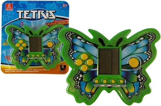 Le jeu électronique Tetris en forme de papillon offre un divertissement intemporel dans un format compact et résistant. Faites pivoter et empilez les pièces qui tombent afin de remplir des lignes entières et de marquer un maximum de points. À chaque ligne supprimée, la vitesse augmente et la partie devient plus palpitante.