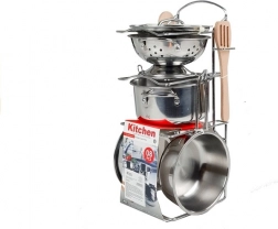 Cet ensemble d'ustensiles de cuisine en inox est le complément parfait pour les petits cuisiniers. Il contient une large gamme de composants offrant d'innombrables possibilités de jouer à préparer et servir de délicieux plats. Grâce à son apparence réaliste et ses dimensions confortables, l'ensemble est idéal pour les petites mains des enfants.