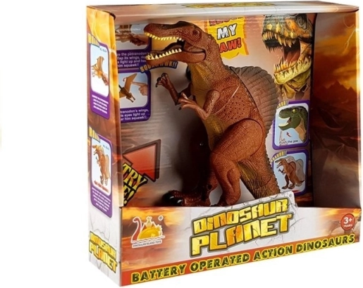 Le jouet possède un crâne long et droit et une silhouette massive et musclée. Il est alimenté par des piles 1,5 V de type « AA », incluses dans le set. Une fois activé, le grand dinosaure se met à marcher et rugir. Des effets lumineux, tels que des yeux clignotants, intensifient encore cette expérience hors du commun.
