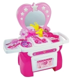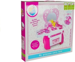 La coiffeuse pour enfant avec accessoires de beauté est idéale pour les fillettes qui aiment imiter leurs mamans et leurs grandes sœurs. Cette jolie coiffeuse rose avec miroir en forme de cœur est complétée par :